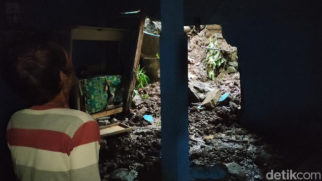 "Pas lagi beres-beres itu saya denger ada suara gemuruh di barat rumah. Terus saya minta istri saya keluar ke tempat tetangga, dan saya ngecek keadaan di luar, tiba-tiba tebing di samping rumah ini langsung longsor," ungkapnya.