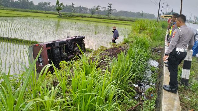 Sebuah mobil jenis Suzuki Carry terjun ke persawahan di Wates, Kulon Progo, kemarin. Insiden yang diakibatkan sopir hilang kendali ini viral di media sosial.
