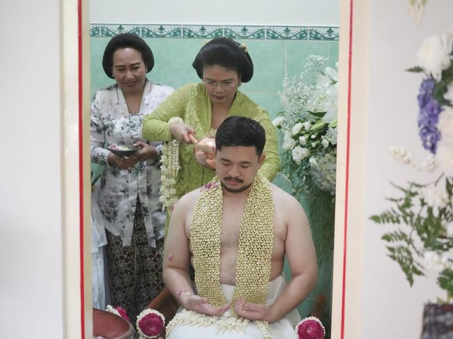 "Setelahnya, calon pengantin putri kita busanani (dikenakan pakaian) ngagem sekar (pakai bunga), bunga melati di bagian dadanya dan kemudian melakukan prosesi siraman. Tapi sebelumnya, menunggu Gusti Putri terlebih dulu untuk memberikan pangestu," terangnya.