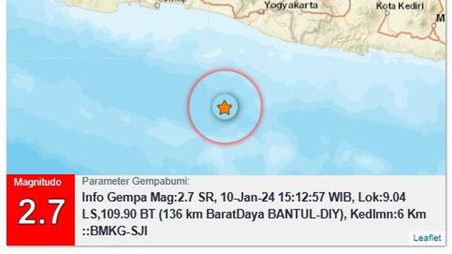 "Info Gempa Mag:2,7, 10-Jan-24," kata Badan Meteorologi, Klimatologi, dan Geofisika (BMKG) DIY dalam keterangan tertulisnya, Rabu (10/1/2024).