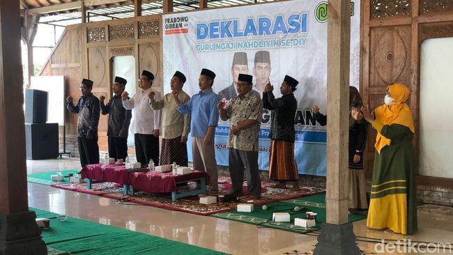 Ratusan guru ngaji nahdliyin atau Madrasah Diniyah Nahdliyin di Daerah Istimewa Yogyakarta (DIY) yang tergabung dalam Forum Komunikasi Diniyah Takmiliyah DIY deklarasikan dukung pasang calon nomor urut 02 Prabowo Subianto dan Gibran Rakabuming Raka pada Pilpres 2024 mendatang.