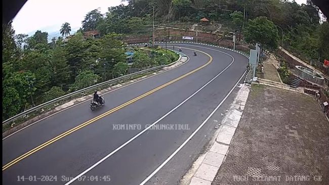 Pantauan detikJogja melalui CCTV Diskominfo Gunungkidul di titik perempatan Patuk dan Tugu Selamat Datang Patuk pada Minggu (14/1/2024) pukul 07.04, jalur tersebut masih tampak sepi.