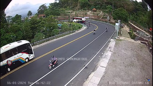 Pantauan detikJogja melalui CCTV Diskominfo Gunungkidul di titik perempatan Patuk dan Tugu Selamat Datang Patuk pada Selasa (16/1/2024) pukul 16.42 WIB, arus lalin di jalan tersebut terpantau ramai.