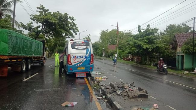 "Kemungkinan karena ban selip akibat jalan yang licin dan basah," ujarnya.