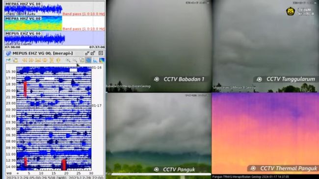 "Terjadi 3 kali Awan Panas Guguran di Gunung #Merapi tanggal 19 Januari 2024 pukul 03:23 WIB, 03:29 WIB dan 04.19 WIB dengan Amplitudo max 37 mm, 35 mm, dan 35 mm. Durasi 312.9 detik, 258 detik, dan 160 detik, jarak luncur maksimal 3000 meter ke Barat Daya (Kali Bebeng)," terang BPPTKG melalui rilis yang diterima detikJogja, Jumat (19/1/2024).