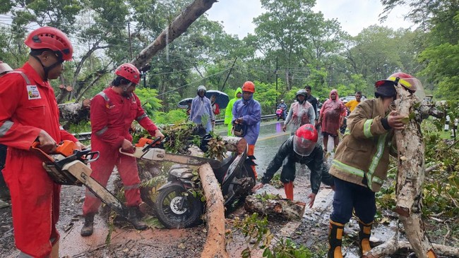 "Jadi sepeda motor bertiga tertimpa pohon dan dibawa ke RS Nur Rohmah. Jadi yang satu itu luka lecet dan yang dua ini masih dalam perawatan," kata Kepala Bidang Kedaruratan dan Logistik BPBD Gunungkidul, Sumadi, kepada wartawan melalui telepon, Jumat (19/1/2024).