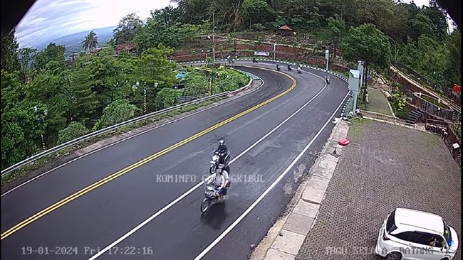 Pantauan detikJogja melalui CCTV Diskominfo Gunungkidul di titik perempatan Patuk dan Tugu Selamat Datang Patuk pada Jumat (19/1/2024) pukul 17.22 WIB, arus lalu lintas terpantau ramai.
