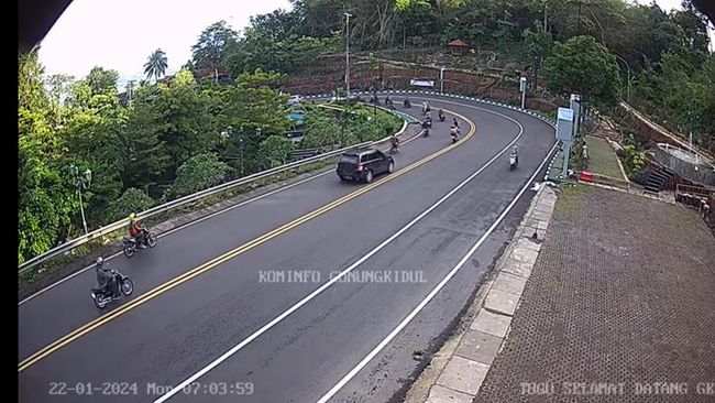 Pantauan detikJogja melalui CCTV Diskominfo Gunungkidul di titik perempatan Patuk dan Tugu Selamat Datang Patuk pada Senin (22/1/2024) pukul 07.04 WIB, kondisi arus lalin ramai.