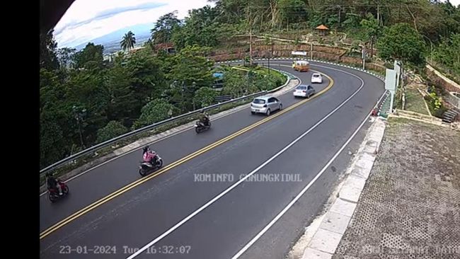 Pantauan detikJogja melalui CCTV Diskominfo Gunungkidul di titik Tugu Selamat Datang Patuk pada Selasa (23/1/2024) pukul 16.32 WIB, arus di jalan tersebut terpantau landai.