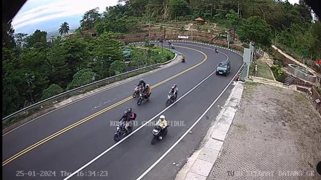 Pantauan detikJogja melalui CCTV Diskominfo Gunungkidul di titik Tugu Selamat Datang Patuk pada Kamis (25/1/2024) pukul 16.34 WIB, arus lalu lintas di jalan tersebut terpantau ramai.