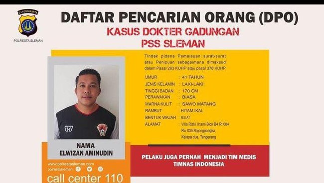Polresta Sleman akhirnya menangkap Elwizan Aminudin atau biasa disapa dokter Amin. Elwizan sebelumnya dilaporkan oleh manajemen klub sepakbola PSS Sleman pada tahun 2021 setelah terungkap sebagai dokter gadungan.