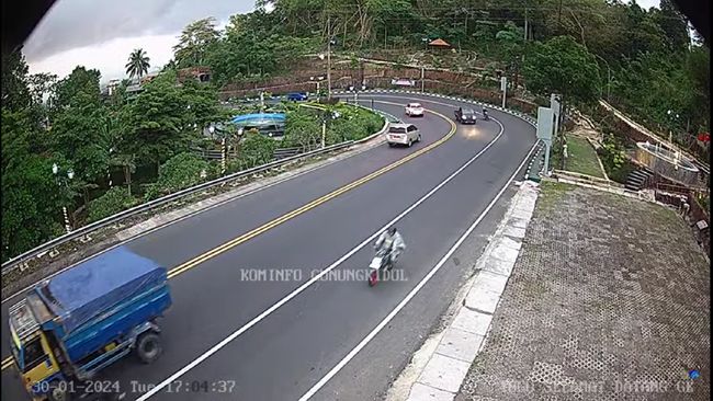 Pantauan detikJogja melalui CCTV Diskominfo Gunungkidul di titik perempatan Patuk dan Tugu Selamat Datang Patuk pada Selasa (30/1/2024) pukul 17.04 WIB, arus lalu lintas terpantau lancar.