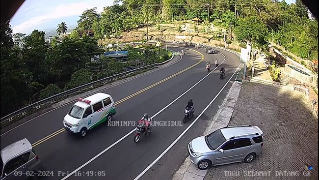 Pantauan detikJogja melalui CCTV Diskominfo Gunungkidul di titik perempatan Patuk dan Tugu Selamat Datang Patuk pada Senin (12/2/2024) pukul 07.41 WIB, kondisi arus lalin terlihat ramai.