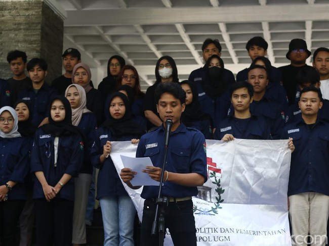 "Mengapa kita berkumpul pada hari ini, karena situasi demokrasi yang terjadi di hari ini. Kita melihat bahwa kekuasaan ada upaya-upaya pencederaan demokrasi untuk kepentingan pribadi dan golongannya oleh kekuasaan," kata perwakilan mahasiswa DPP Fisipol UGM, Faris Rubiansyah kepada wartawan, Senin (12/2/2024).