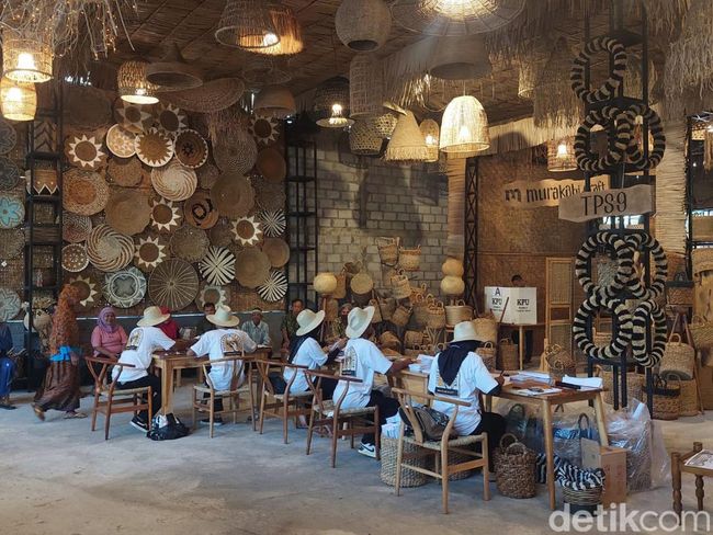 "TPS kami memang dikonsep berbeda, peletakannya di dalam sentra kerajinan serat alam, sehingga banyak ornamen di sini, penuh dengan kerajinan," kata anggota KPPS 6 TPS 9 Tanjungharjo, Pargono, saat ditemui wartawan, Rabu (14/2/2024).