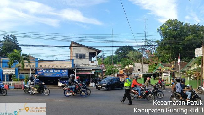 Pantauan di detikJogja melalui CCTV Diskominfo di titik perempatan Patuk dan Tugu Selamat Datang Patuk pada Kamis (22/2/2024) pukul 07.22 WIB, kondisi arus lalin tampak ramai.