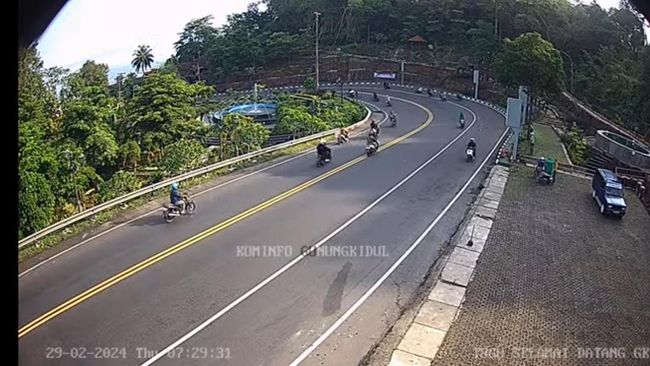 Pantauan detikJogja melalui CCTV Diskominfo Gunungkidul di titik Tugu Selamat Datang Patuk pada Kamis (29/2/2024) pukul 07.30, arus lalu lintas tampak ramai.