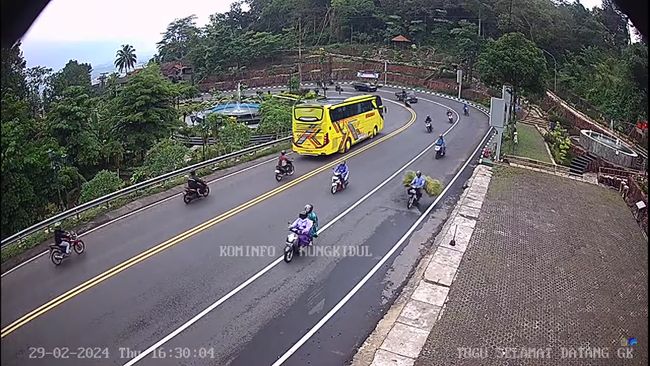 Pantauan detikJogja melalui CCTV Diskominfo Gunungkidul di titik perempatan Patuk dan Tugu Selamat Datang Patuk pada Kamis (29/2/2024) pukul 16.30 WIB, arus lalin di jalan tersebut terlihat ramai.