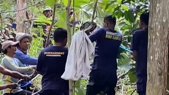 "Tadi kan pohonnya sempat kita robohkan demi untuk nangkap ular, kan nggak mau turun. Pakai senso tadi. Akhirnya setelah sampai bawah kita tangkap," katanya.