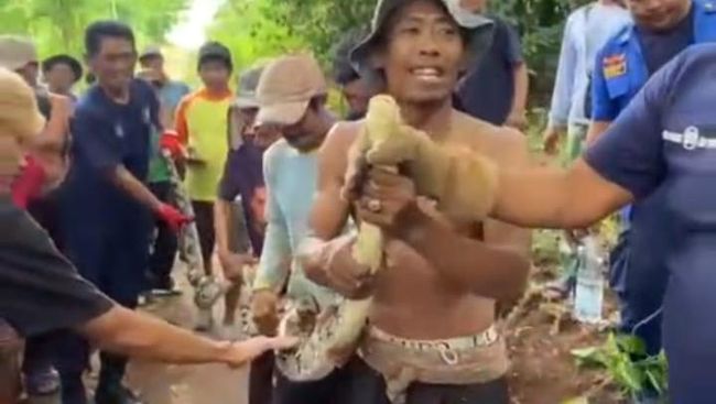 "Tadi kan pohonnya sempat kita robohkan demi untuk nangkap ular, kan nggak mau turun. Pakai senso tadi. Akhirnya setelah sampai bawah kita tangkap," katanya.