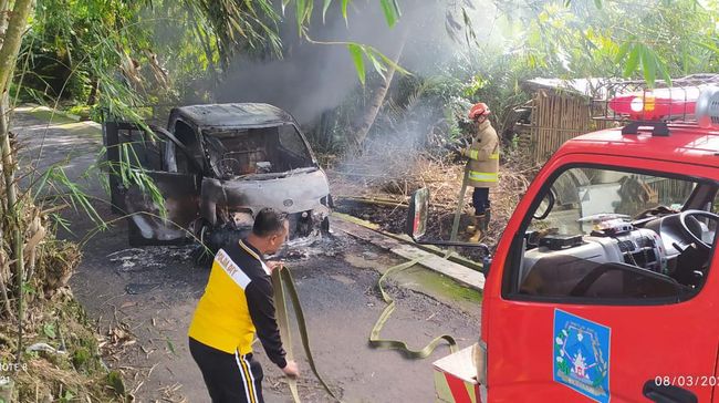 "Seorang mendengar suara ledakan cukup keras selanjutnya keluar api yang semakin membesar dan akhirnya membakar mobil itu," kata Samiyono.