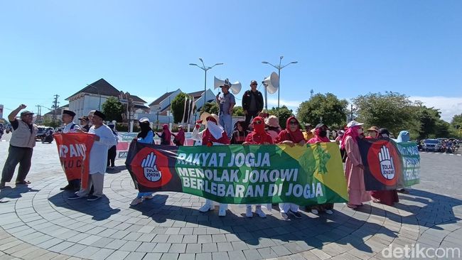 Massa yang menamakan diri Aksi Gerakan Rakyat Indonesia Berdaulat menuntut Presiden Joko Widodo (Jokowi) tidak menginjakkan kaki lagi ke Daerah Istimewa Yogyakarta (DIY). Massa juga menolak Jokowi berlebaran di Jogja.