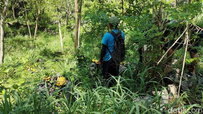 Pantauan detikJogja di lokasi pada Rabu (20/3), warga sekitar bersama perangkat Kalurahan Purwodadi memberi pakan berupa pisang satu kardus. Pakan tersebut diletakkan di sarang monyet yang berada di lereng gunung pesisir pantai.