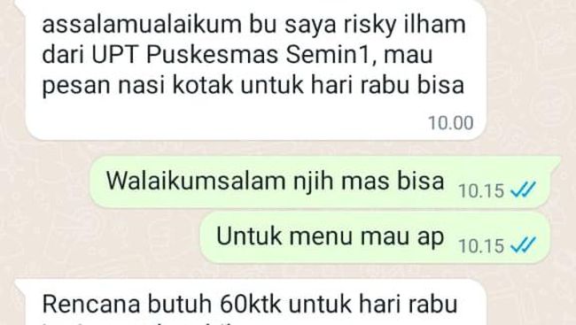 Pencatut nama Puskesmas Semin 1 tersebut memesan di empat warung itu masing-masing 60 kotak nasi. Pesanan tersebut dijanjikan akan diambil pada Rabu (10/4) pukul 16.00 WIB.