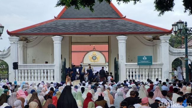 Pantauan detikJogja, Rabu (10/4/2024), jemaah berduyun-duyun datang ke pelataran Masjid Gede Kauman. Tampak sebagian besar menenteng sajadah hingga alas untuk salat, baik koran hingga plastik.