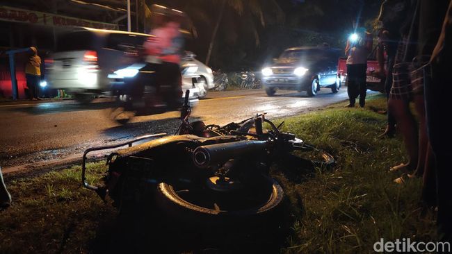 Kerasnya tabrakan menyebabkan MR tewas di lokasi kejadian. Sepeda motornya remuk pada bodi depan.