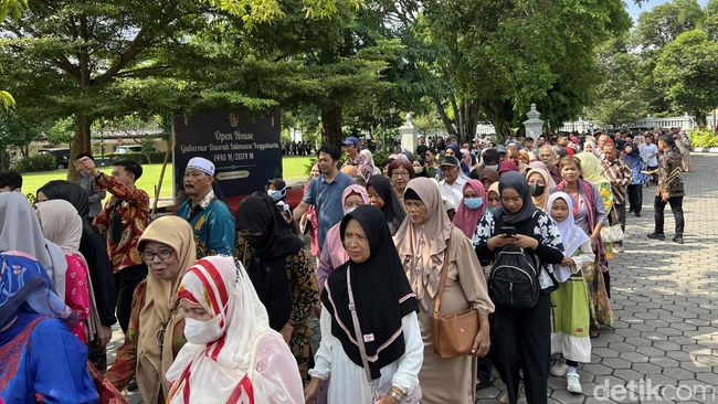 Pemerintah Daerah DIY menggelar open house di Kompleks Kepatihan Jogja hari ini. Antusiasme masyarakat untuk bersalaman dengan Gubernur DIY Sri Sultan HB X terlihat dengan ramainya antrean yang mengular panjang.