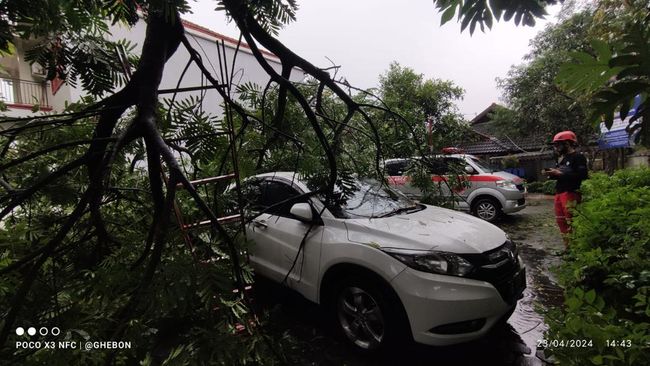 Meski tidak menimbulkan korban jiwa atau luka, mobil mengalami kerusakan. Patahan batang pohon akasia pun sudah bisa dievakuasi petugas gabungan.