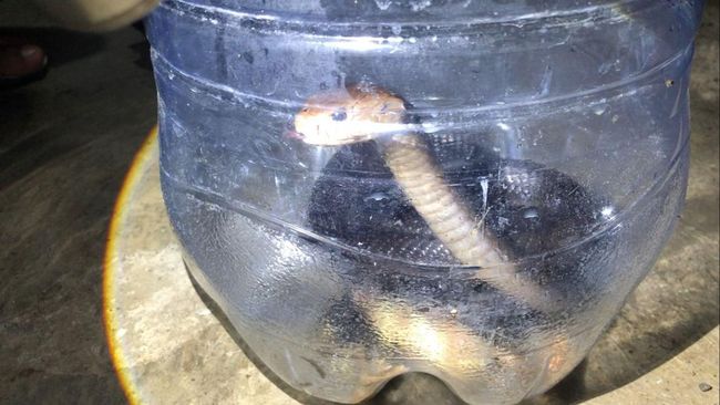 "Akhirnya ular jenis kobra Jawa dengan ukuran lebih dari satu meter itu diamankan di dalam botol untuk akhirnya dilepaskan di tempat yang lebih aman atau habitatnya," ucapnya.