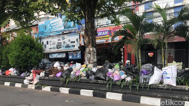 Pantauan detikJogja di lokasi pada Rabu (5/6/2024) siang, tumpukan sampah ini berada di sebelah utara lampu apill simpang Demangan atau di sebalah selatan pasar Demangan. Sampah membentang di taman pembatas jalan hingga sampai sekitar 12 meteran.