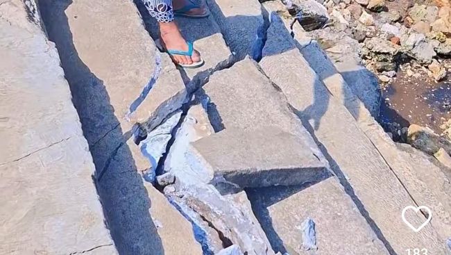 Amblesnya talut tersebut diunggah oleh akun Instagram @updatedisini pada Jumat (7/6/2024). Akun tersebut menarasikan rusaknya talut diduga akibat adanya gelombang pasang beberapa hari lalu. Kondisi talut kini miring kurang lebih 40 meter dan terjadi pecahan di beberapa titik.