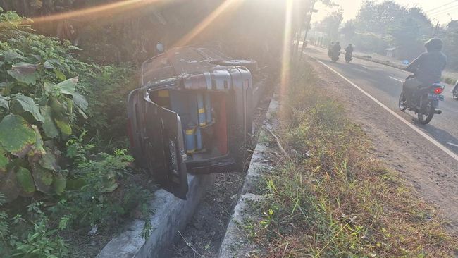 Akibatnya mobil keluar jalur hingga terguling dan masuk ke dalam selokan. "Sampai TKP yang berupa jalan menikung ke kanan, mobil lepas kendali berjalan terlalu ke kiri hingga menabrak paku jalan dan terguling ke selokan sebelah kiri jalan," jelasnya.