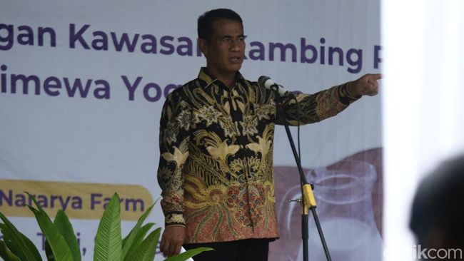 Menteri Pertanian (Mentan) Andi Amran Sulaiman saat kunjungan kerja di Kapanewon Turi, Kabupaten Sleman, Sabtu (29/6/2024) (Jauh Hari Wawan S/detikJogja)