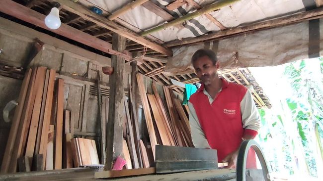"Saya masih senang di sini, tempatnya nyaman. Umpami pados kayu cerak ten mriki (seumpama cari kayu lebih dekat di sini)," kata Sumiran yang bekerja sebagai tukang kayu ini.