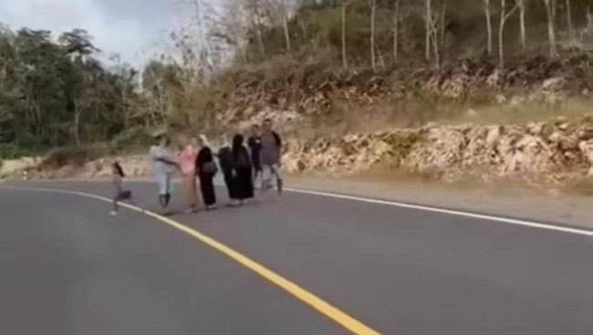 Di video tersebut jalan yang dimaksud merupakan Jalur Jalan Lintas Selatan (JJLS) di wilayah Gunungkidul. Tampak setidaknya ada lima orang yang berjejer hingga menutup lajur jalan di sebelah kanan.