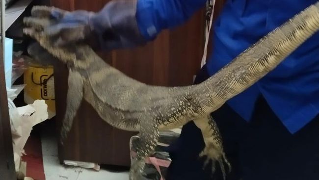 Heri mengungkapkan pihaknya kesulitan mengevakuasi biawak tersebut lantaran berada di atas plafon yang ruangannya kecil. Beruntung plafon tersebut berlubang.