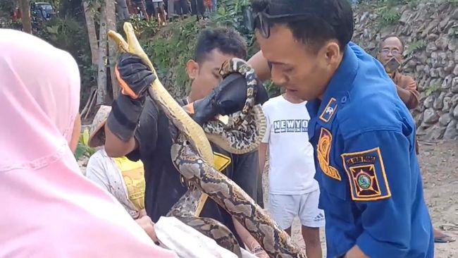 Seekor ular berukuran jumbo bikin geger masyarakat di Kulon Progo, Daerah Istimewa Yogyakarta (DIY). Ular tersebut ditemukan nangkring di atas pohon yang melintang di jalan hingga harus dievakuasi oleh Pemadam Kebakaran (Damkar) Kulon Progo.