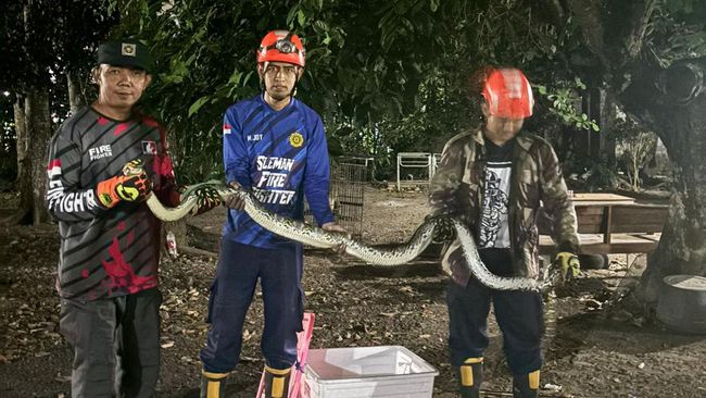 Petugas operasional Damkar Sleman, Reza Apriyanto, mengatakan ular sanca itu dievakuasi pada Minggu (4/8) dini hari. Ular itu ditangkap saat berada di halaman rumah warga.
