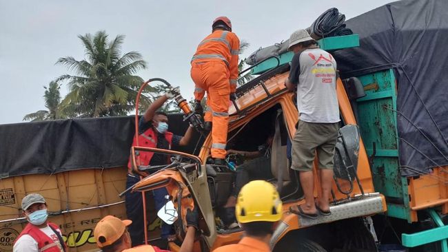 Diky mengatakan kerasnya benturan membuat dua kendaraan ringsek. Sopir dan penumpang di kedua kendaraan itu sempat terjebak kabin truk yang remuk. Walhasil dilakukan evakuasi yang memakan waktu hingga dua jam.