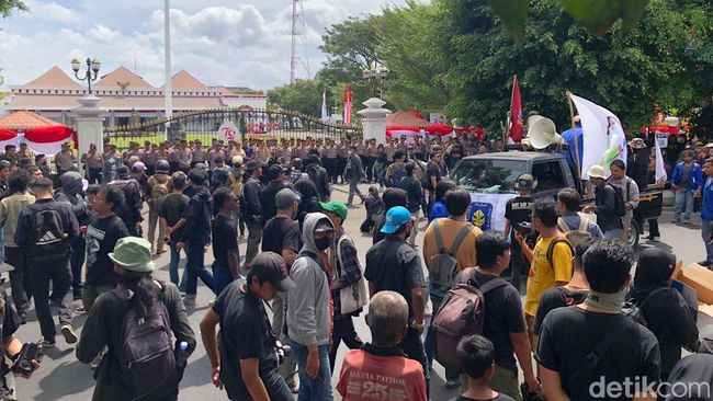 Pantauan detikJogja, long march massa dari Tempat Khusus Parkir (TKP) Abu Bakar Ali (ABA) telah sampai di depan Istana Kepresidenan Yogyakarta atau Gedung Agung sekitar pukul 12.55 WIB. Mobil pikap yang disulap menjadi mimbar orasi diparkir tepat di seberang Istana Kepresidenan.