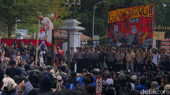 Pantauan detikJogja hingga pukul 14.55 WIB, Selasa (27/8/2024), massa aksi terus melantangkan orasi-orasinya selama sekitar dua jam. Selain itu juga, diselingi pembacaan puisi dan sajak-sajak bernada perlawanan.
