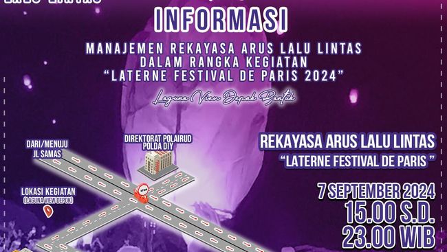 "Rekayasa lalin dimulai pukul 15.00 hingga 23.00 WIB," kata Kasi Humas Polres Bantul, AKP I Nengah Jeffry kepada wartawan, Jumat (6/9/2024).