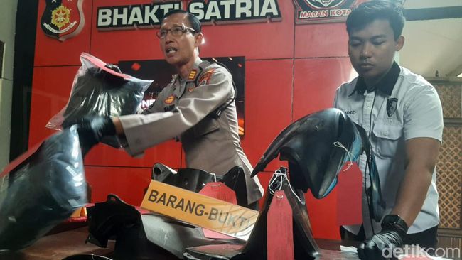 Keduanya lalu menuntun sepeda motor tersebut keluar menuju pinggir jalan dan dilanjutkan mendorong motor itu menuju dekat rumah RB. Kemudian keduanya membongkar bodi samping kanan dan kiri dan bodi tengah serta melepas pelat nomor.