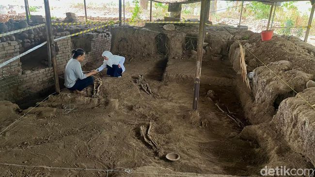 "Semuanya (dikubur) tengkurap dengan kedua tangan terlipat di depan dada. Posisi kepala lurus menghadap ke bawah. Bukan sesuatu yang normal," kata Tenaga Ahli Paleoantropologi dari Departemen Antropologi Fisip Unair, Delta Bayu Murti kepada detikJatim di lokasi ekskavasi, Rabu (9/10/2024).