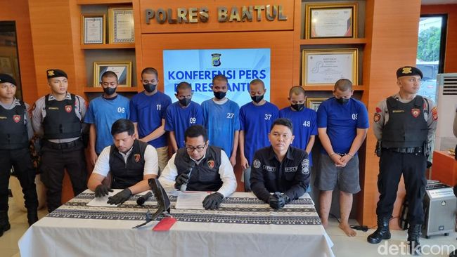 Identitas masing-masing tersangka yakni inisial OM (20), BKS (19), RZP (19), FNA (21), DDS (20), DP (19), dan EAW (19). Kemudian AOS (17), FQA (15), DY (17), dan DAK (16). Tujuh tersangka dewasa dihadirkan dalam konferensi pers Polres Bantul, Senin (21/10/2024).