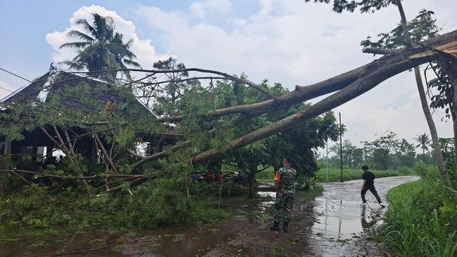 - Pohon tumbang menimpa atap rumah di Jetisan, RT 04 RW 02, Hargobinangun, Pakem